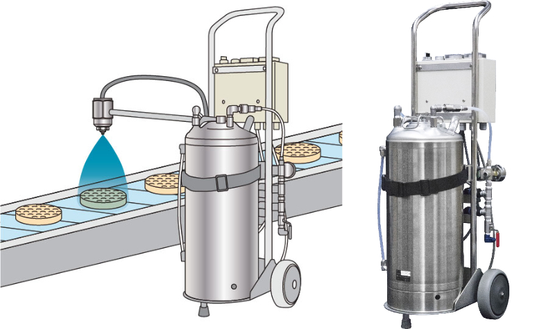 Thường dùng cho phun dầu chống dính lên băng tải, phủ dung dịch làm ẩm bề mặt hoặc dầu lên bao bì.