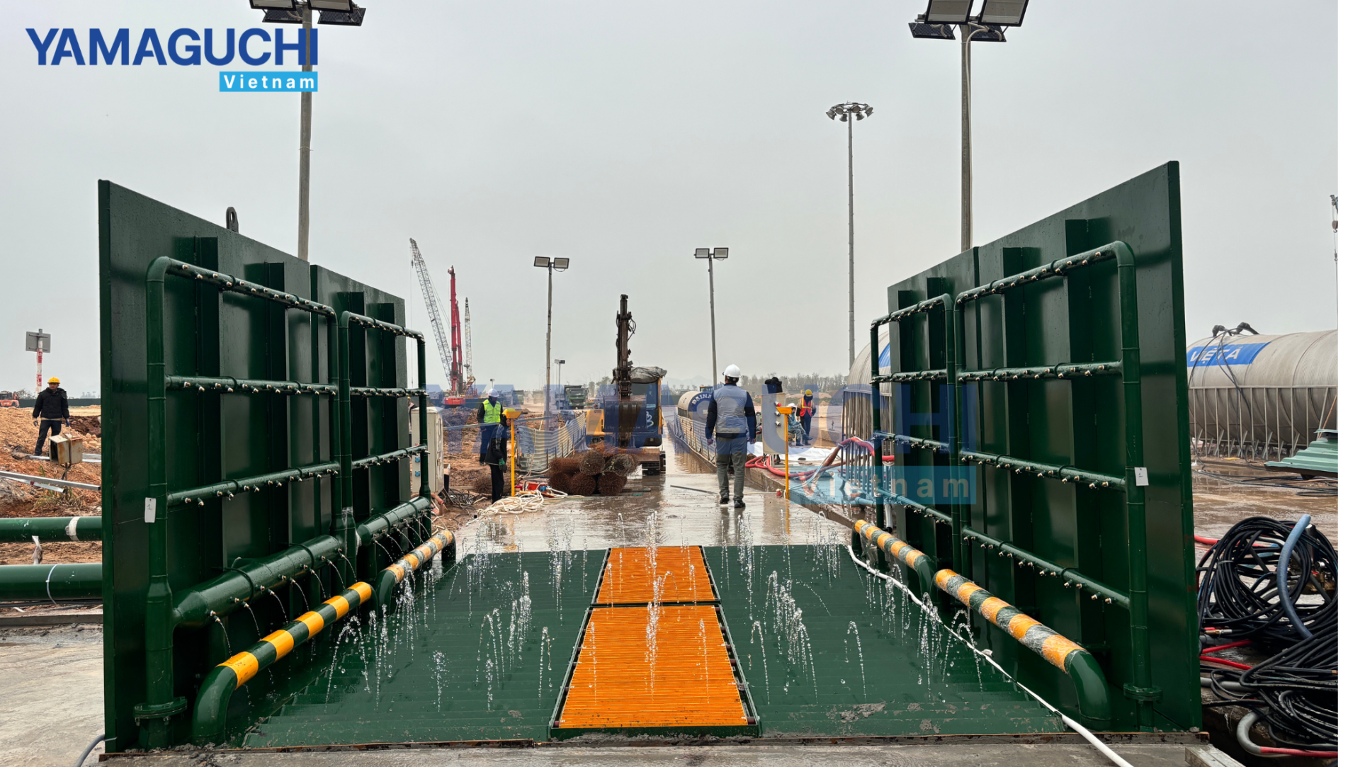 - Lắp đặt cầu rửa xe công trường và hệ thống bơm nước.