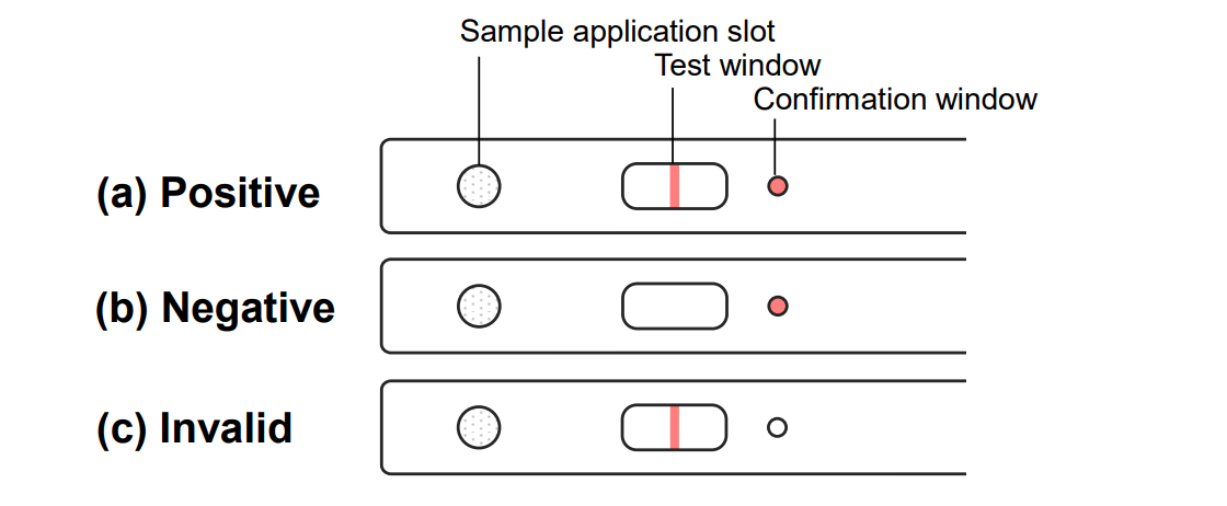 - Âm tính: Không có vạch màu trong vùng test, chỉ có vạch xác nhận.